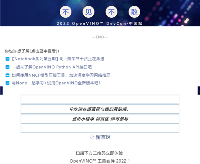 為了讓大家能夠更深入的參與和體驗,本次峰會特設 Demo 環節。感興趣的小伙伴請提前下載和安裝 OpenVINO? 工具套件,以便活動時能夠更好的參與哦。