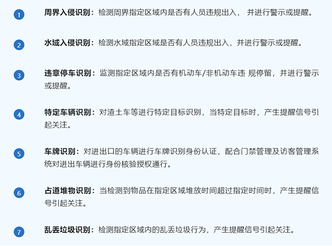 作為智慧社區構建的基礎技術,視頻分析扮演著重要角色。智能視頻分析系統能夠通過攝像頭等設備,采集社區中的人、車、公共設施等管理對象的視覺數據,并通過服務 器、網關等設備進行自動化、智能化分析,從而生成智慧化的數據洞察。在長期的實踐中,智能視頻分析系統被證明可以有效滿足用戶在周界入侵識別、違章停車識別、違停識別、垃圾管理、公共設施管理等方面的需求,助力營造卓越的社區/園區環境。