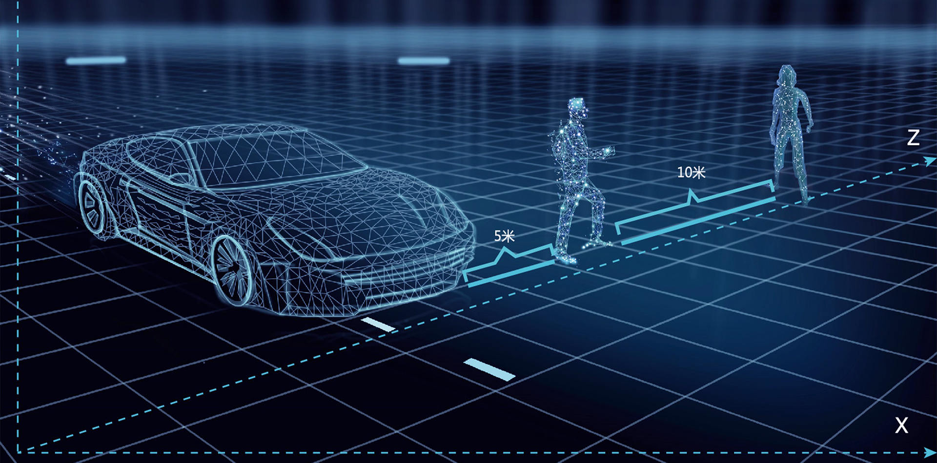 2D圖像是一個平面的概念,沒有距離和深度信息,3D場景中能夠識別人與攝像機的距離,車-男人-女人之間的距離,由像素距離得出空間距離。
